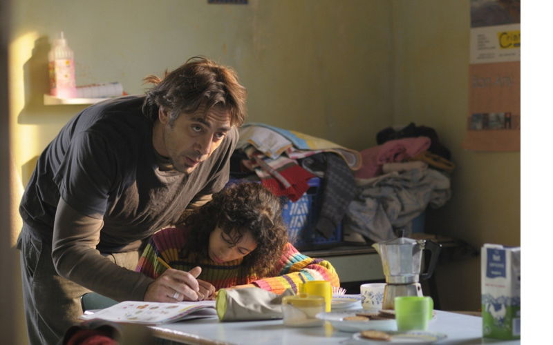 Uxbal and his morally suspect brother Tito (Eduard Fernandez) are a pair of half-baked hoods who profit from Barcelona’s black market, taking money from Chinese sweatshop owners and Senegalese street vendors to pay off the city’s corrupt police officers. The work is clearly an emotional hardship for Uxbal, who feels deeply for the plight of the immigrants he sees exploited and abused, especially the young Chinese mother Liwei (Luo Jin). Liwei has a small child and routinely looks after Uxbal’s 10-year-old daughter and her little brother.